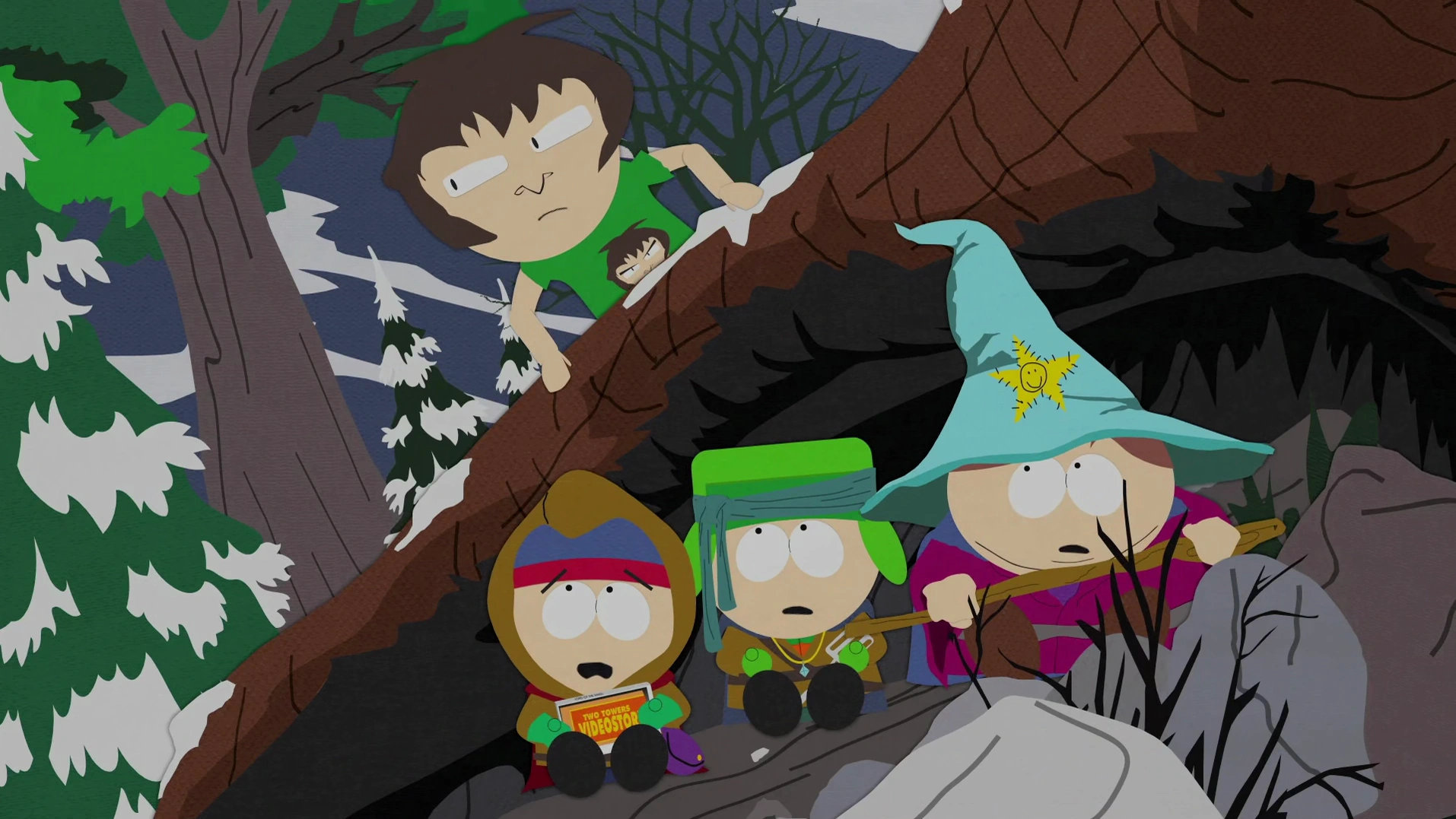 In Wahrheit suchen die Jungs allerdings - weiterhin in Unwissen über die wahre Natur ihres Filmes - Clydes Haus auf, um dem „Hochelfen von Pharagon“ (alias Clyde) das verfluchte Band zu zeigen. Bei einer Versammlung mehrerer Kinder im Rahmen ihres Herr der Ringe-Rollenspiels wird beschlossen, dass Tolkien sich das Band ansehen soll, um festzustellen, ob es wirklich dunkle Kräfte beinhalte. Nicht viel später bringt Tolkien, ohne sein Kostüm tragend, das Band zurück und geht, nachdem er meint, er wisse nicht, was er gesehen habe, und wolle es auch nicht wissen. Clyde beauftragt Stan und die Jungs zusammen mit Jimmy, Craig und dem Kindergärtner Filmore, den Film in die Videothek zurückzubringen, aus der er entliehen wurde.