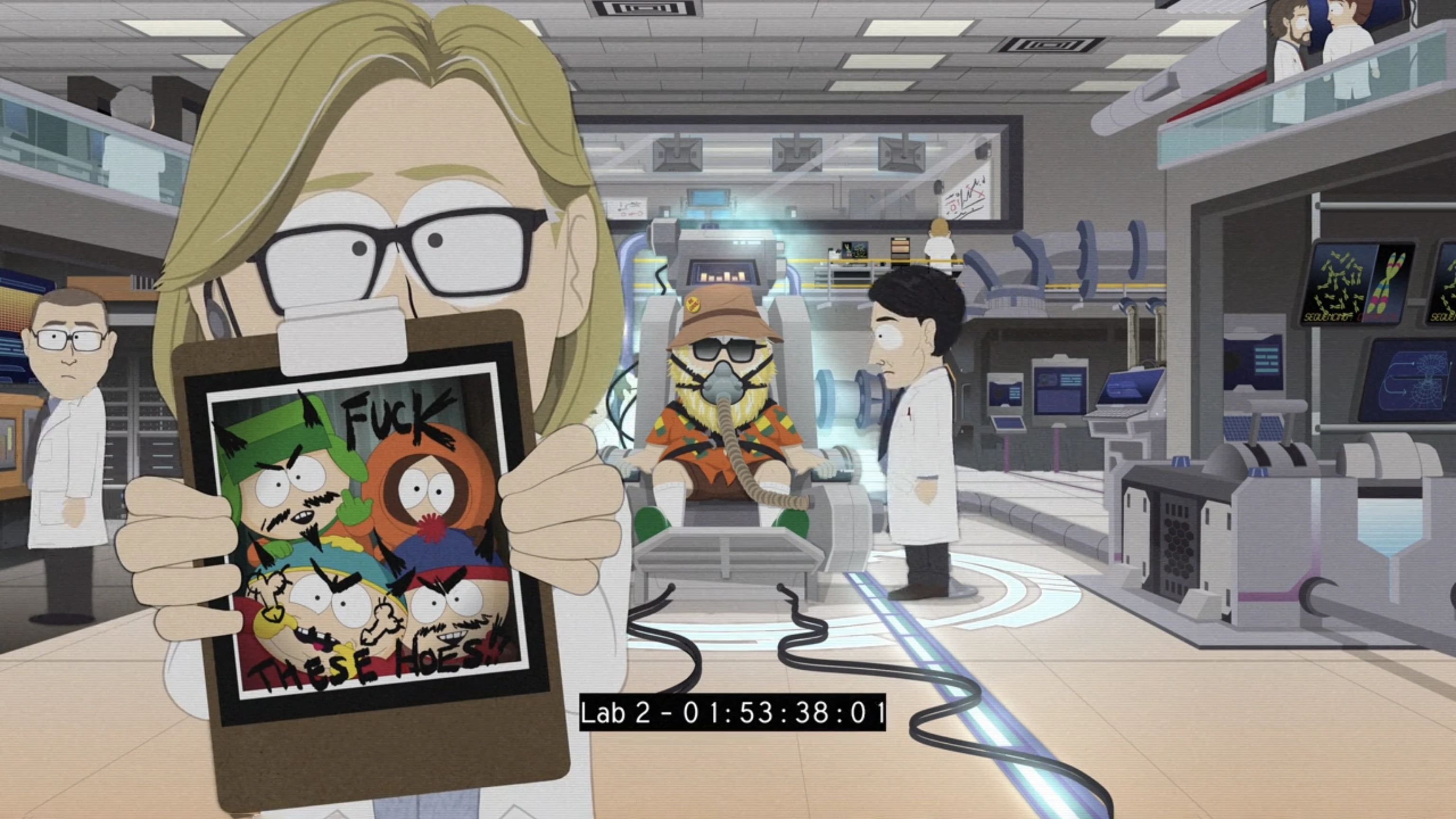 Am folgenden Tag versuchen Jimmy, Craig, Tweek, Wendy und Darin Clyde davon zu überzeugen, sich impfen zu lassen, damit sie alle nach Hause zurückkehren können, jedoch behauptet Clyde, er habe Gelbsucht und das Vakzin sei manchmal mit Gelbstoffen von Bananen kontaminiert. Tolkien zieht daraufhin die Aufmerksamkeit auf den "McCormick Wissenschaftsflügel" der Schule, wo sie ein massives geheimes Laboratorium mit Blut überall finden, zusammen mit einigem seiner Forschung. Sie finden heraus, dass ein Mann namens Victor Chaos (gesprochen: Tschaus) als rechte Hand Kennys erwähnt wird. Er wird jedoch aktuell in der "South Park Nervenheilanstalt Plus" festgehalten. Da jeder in der Gruppe bei Besuch der Nervenheilanstalt geimpft sein muss, versucht Wendy Clyde auszutricksen, indem sie vorgibt, ihm Kokain zu geben, was allerdings in Wahrheit der Impfstoff ist. Clyde findet es jedoch heraus und weigert sich.
