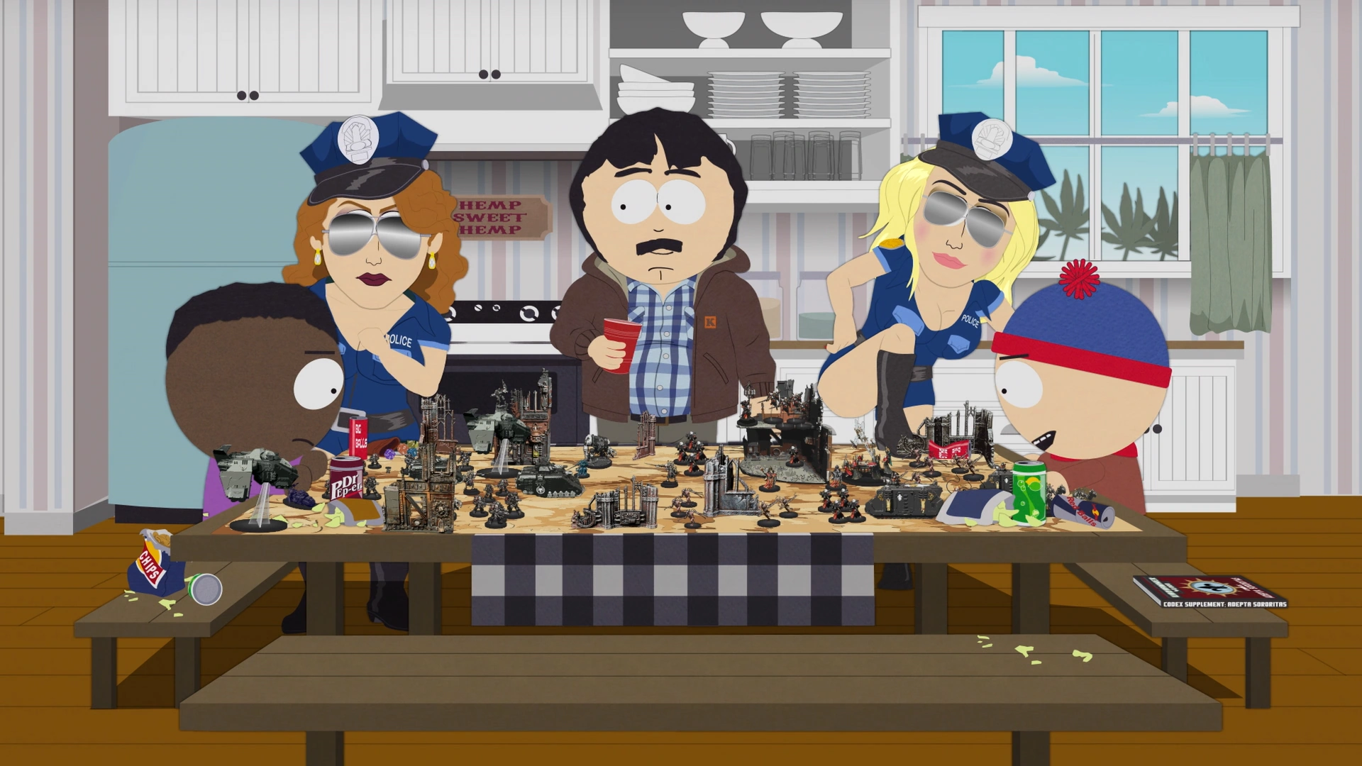 Eine große Masse an jungen Menschen feiert nun im Haus der Marshes, während Stan und Tolkien ihr Spiel fortsetzen. Randy schwingt auf einem Kerzenleuchter umher und verletzt sich, als er betrunken mit den anderen feiert. Ein Krankenwagen trifft ein, um Randy wegen seiner Verletzungen - darunter ein gebrochener Arm, gebrochene Rippen und seine Beine - in die Ambulanz zu bringen, was Randy jedoch verweigert, da er seinen Sohn beobachten müsse. Er vergleicht dabei das Warhammer-Spiel mit Puppenspielen.