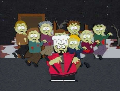 Los médicos que habían sido victimas de las mordidas de Kenny acuden donde un colega suyo. Los síntomas que presentan (temperatura inferior a los 37 °C, pulso y latidos de corazón inexistentes, ojos inflamados) hacen que el doctor les diagnostique conjuntivitis. La epidemia se expande gracias a Kenny quien muerde a mas personas convirtiéndolas en zombies, y estas a su vez hacían lo mismo. Sin embargo todos creen que se trata solo de conjuntivitis, menos el Chef quien decide buscar ayuda en Stan, Kyle y Cartman, quienes seguian siendo normales y eran los únicos que le creían.