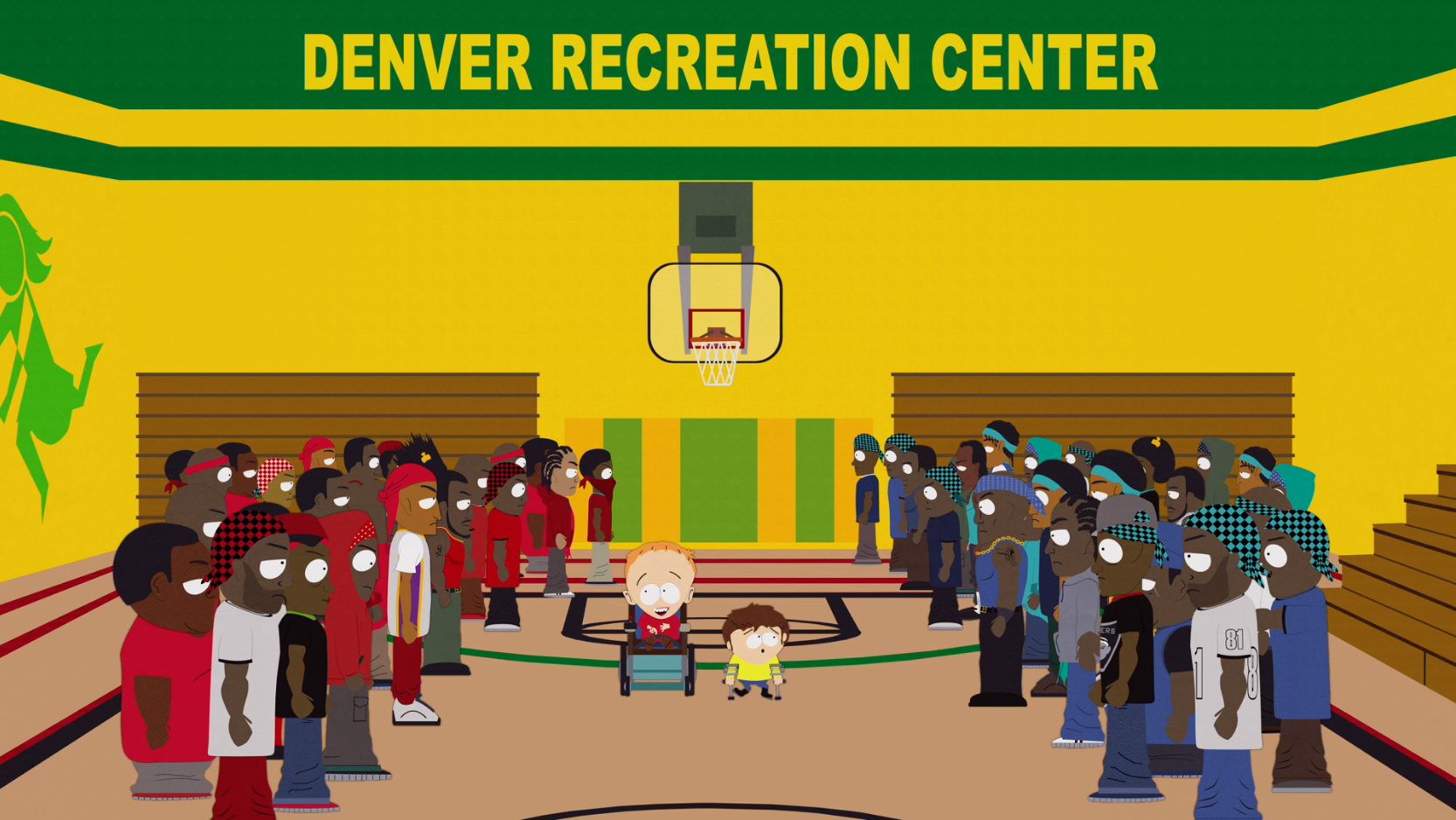 El líder de los Inválidos en Denver le dice a los chicos que tienen que "desangrar culos" si quieren unirse a la banda. Los chicos no saben que este término significa matar, por lo que pasean por la ciudad para "desangrar culo" creyendo que se supone que deben comprar dulces para ellos. Encuentran un grupo en una gasolinera llamado "Ribs 'n' Gas". Mientras caminaban por la calle, causan que un camionero se desvíe violentamente y aplaste a la estación de gas, matando a trece del grupo. El líder de los Inválidos luego da la bienvenida a Jimmy ("Cuatro Patas") y Timmy ("Ruedita") como porque mataron a trece en una noche (un nuevo récord de la pandilla) y trajeron incluso dulces, bombones y gaseosas.