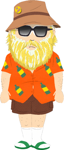 En la línea de tiempo futura ambientada en South Park: Pos Covid, se ha dejado crecer la barba y ha ganado mucho peso. Lleva una camiseta naranja con patrones de botellas de cerveza, pantalones cortos marrones y pantuflas verdes con calcetines blancos. También usa un sombrero marrón claro con una insignia amarilla con las palabras "¡Sé genial!" y un par de anteojos polarizados negros, manteniendo una forma de cubierta.