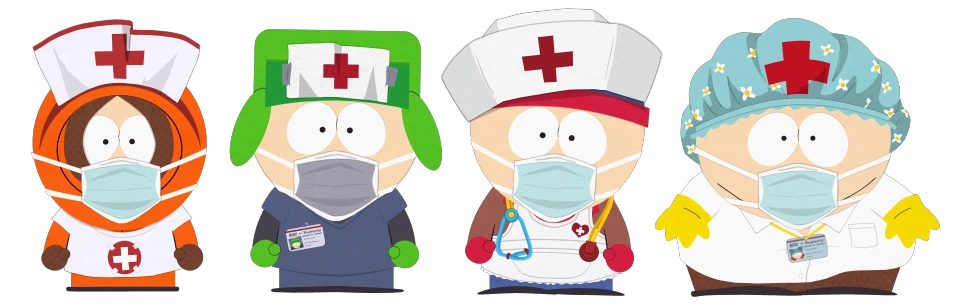 - "Gente blanca renovando casas": solo Cartman aparece completo, Stan, Kyle y Kenny solo se ven al comienzo del episodio.
