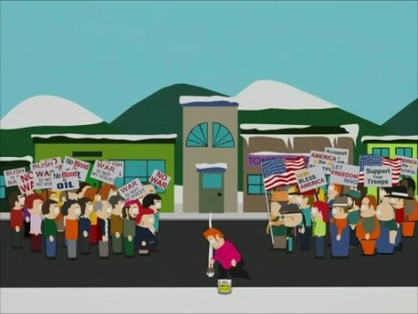 Cuando el Sr. Garrison está de acuerdo en permitir que los que están en protesta con la guerra pueden salir de la escuela temprano para una reunión, todos los chicos van, a pesar de que saben muy poco acerca de la guerra.