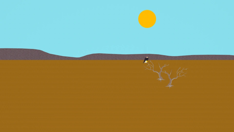 Il est représenté comme un pays sec et désertique d'Afrique.
