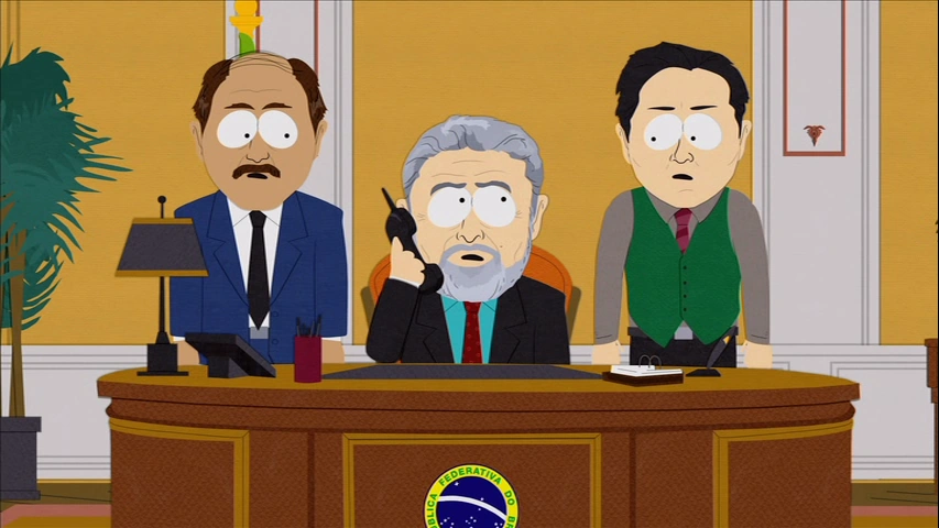 Suite au meurtre présumé de Baby Fark McGee-zax, la Intergalactic Police a interrogé les habitants de South Park s'ils avaient vu de l'"argent de l'espace" volé. Les dirigeants mondiaux, parmi lesquels le président brésilien Lula, ont affirmé qu'ils n'avaient pas non plus vu l'argent de l'espace.