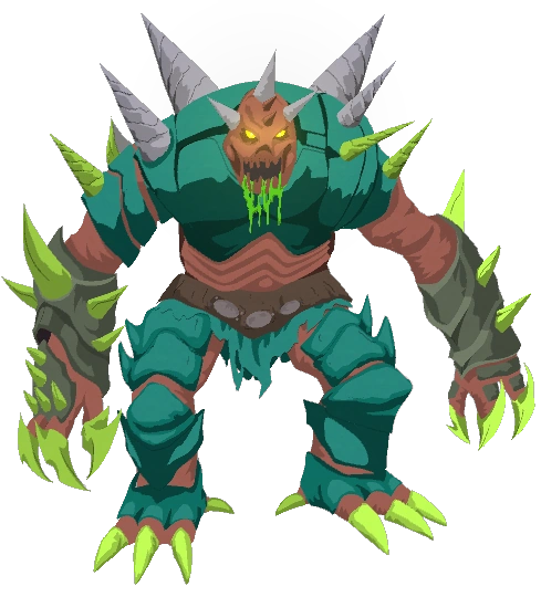 Tooth Decay apparaît comme un énorme monstre vert couvert de pointes, avec des yeux jaunes brillants.