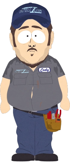 Cody est appelé par M. Mackey pour réparer le système IntelliLink à South Park Elementary. Cependant, plutôt que de réparer le système, il recommande à plusieurs reprises des mises à niveau à M. Mackey, qu'il accepte en permanence, bien que les mises à niveau ne fassent pas grand-chose pour réparer le système. Lorsque M. Mackey confronte enfin Cody, disant que tout ce qu'il veut, c'est que le système fonctionne, Cody recommande un nouveau package qui implique de retirer les panneaux IntelliLink, de les brûler, d'effacer les ordinateurs du programme et de promettre que l'entreprise partirait. Après que M. Mackey ait accepté, Cody retire le système, remercie M. Mackey et sort son arme de poing pour se tirer rapidement une balle dans la tête, se tuant.