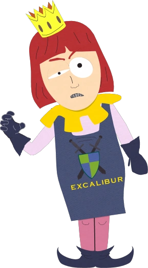 Excalibur Barker a les cheveux roux mi-longs et les sourcils rouges. Il porte l'uniforme Excalibur composé d'une couronne dorée, d'un tablier bleu avec "Excalibur" et d'une image d'un bouclier bleu et vert avec deux épées en forme de "X", un pantalon rose, des chaussures bleues pointues et des gants bleus . Il a d'abord une voix normale lorsqu'il parle pour la première fois à Chef et aux garçons, mais passe à une voix plus sinistre lorsqu'ils lui montrent la pierre.