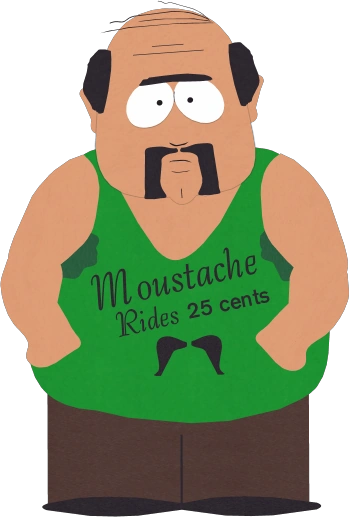 Le barman du Haps Bar est en surpoids et a des cheveux noirs chauves avec une moustache noire. Il porte une chemise verte sans manches portant les mots « Moustache Rides 25 cents » et un imprimé moustache. Des taches de sueur peuvent être trouvées sur ses aisselles.