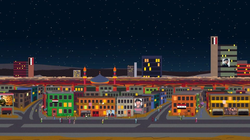 Dans "Jamais sans mon anus", Terrance et Phillip s'envolent pour l'Iran pour sauver La fille de Terrance, où ils la trouvent immédiatement et reviennent avec le alors- Le président irakien Saddam Hussein et ses acolytes, qui montent dans les avions avec leurs armes à feu. Après avoir pris le contrôle des aéroports, ils font entrer clandestinement davantage de soldats et installent des affiches de Saddam partout, prenant lentement le contrôle du Canada, jusqu'à ce que la majorité d'entre eux soient tués par une frappe canadienne à l'arme chimique. Il est à noter que même si les soldats irakiens apparaissent comme des Canadiens dans cet épisode, ceux de "La Chute du traîneau rouge" apparaissent dans le style d'animation normal de "South Park".