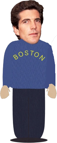 Kennedy est apparu avec une tête photo-réaliste, un peu comme Saddam Hussein. Il portait une chemise violette à manches longues avec "Boston" imprimé légèrement au-dessus de son centre.
