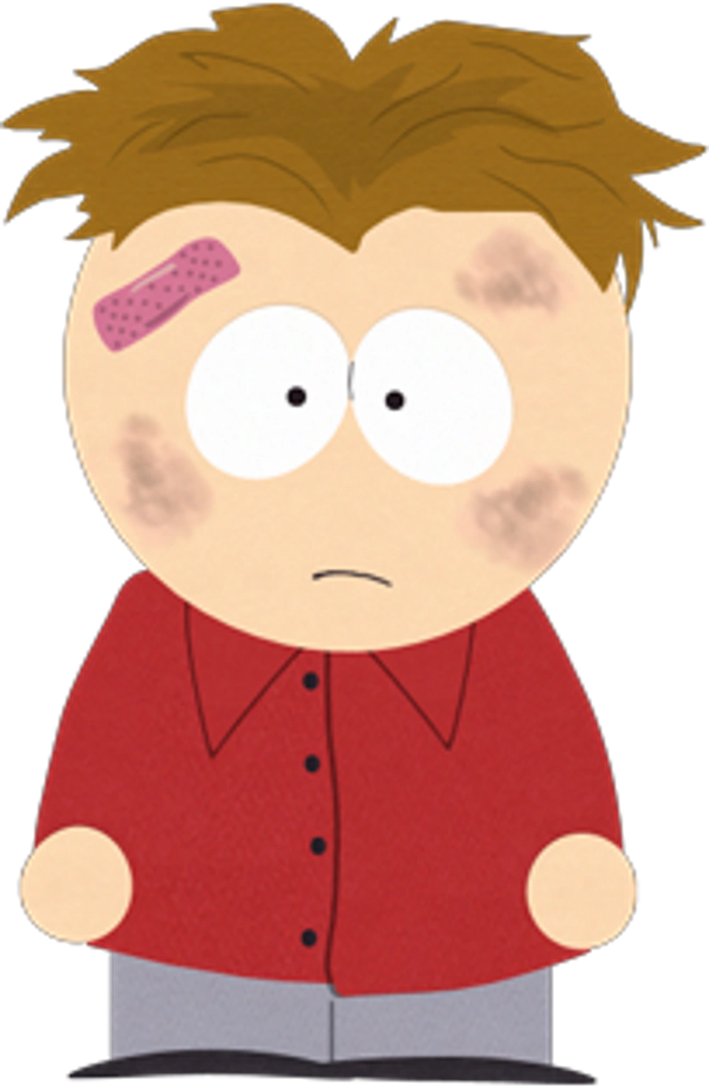 Kevin a les cheveux châtain clair sauvages et désordonnés, avec un bandage, une égratignure, de la saleté et des feuilles sur le visage. Il porte un pantalon gris et une chemise boutonnée rouge et a un ensemble de bretelles. Dans "Quintuplets 2000", il porte un costume bleu clair avec une cravate verte, cependant, dans "Sexual Healing", il porte un costume noir avec une cravate bleu foncé pour les funérailles de Kenny.