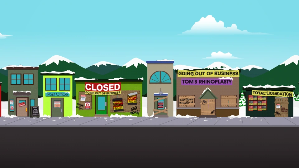 Main Street est un endroit majeur de South Park abritant la plupart des entreprises et des magasins. Il est apparu dans de nombreux épisodes, qu'il s'agisse de la rue entière ou de bâtiments individuels. Au début des saisons, il était utilisé comme une photo de la ville entière, isolée des autres bâtiments avec le panneau de la ville devant, mais au fur et à mesure que la série progressait, des vues plus détaillées sont utilisées.