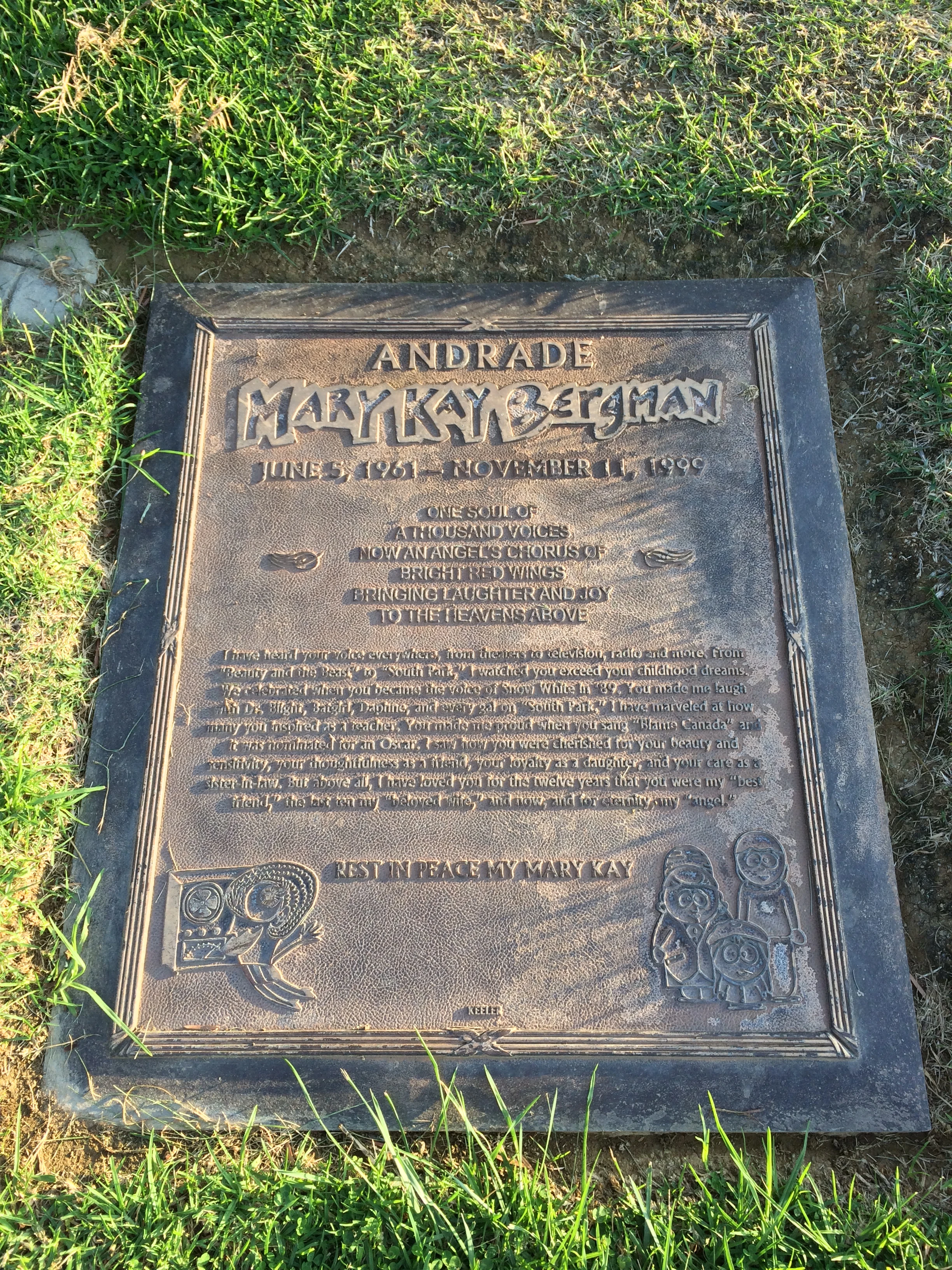 Bergman est enterrée au Forest Lawn Memorial Park dans les collines d'Hollywood, et sa tombe contient des images gravées de Liane Cartman, Sheila Broflovski et Wendy Testaburger.