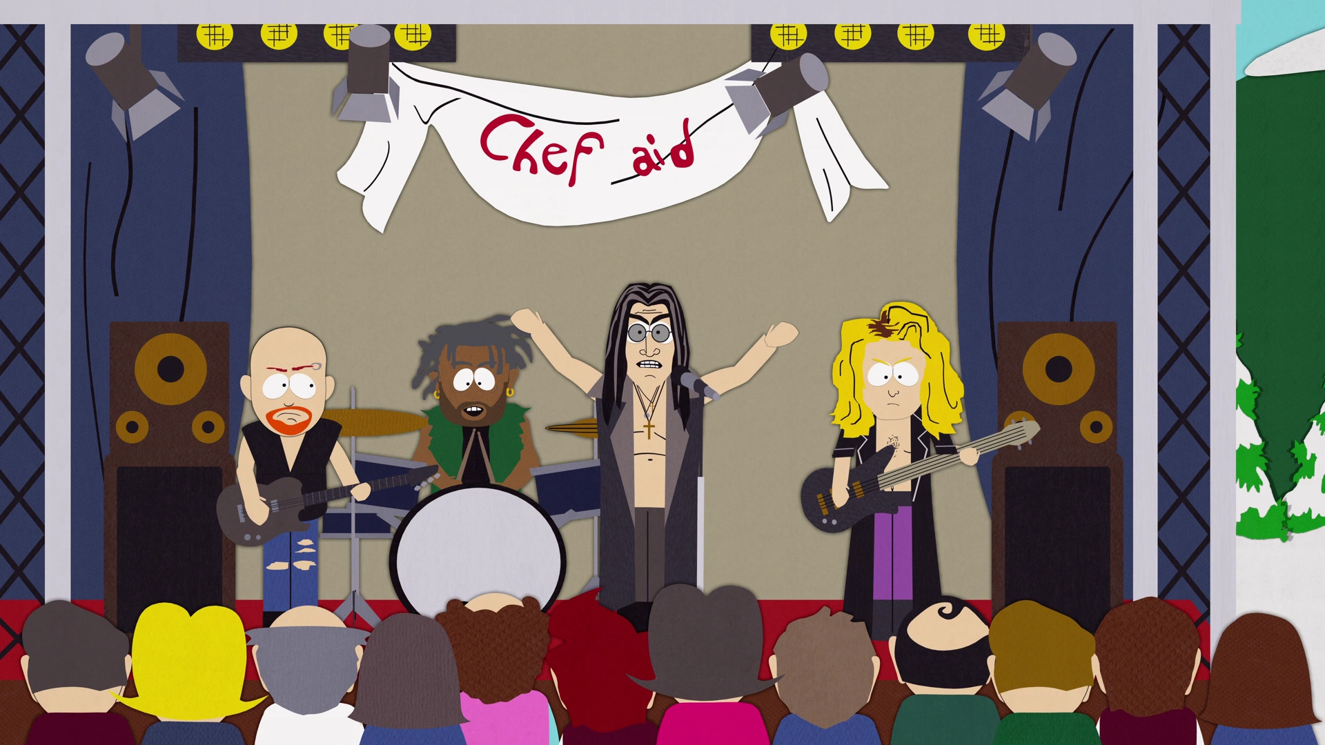 Pendant la représentation, Kenny McCormick est monté sur scène et Ozzy Osbourne lui a arraché la tête. Il s'agit d'une référence à un incident survenu dans les années 1980, au cours duquel Osborne s'est mordu la tête avec une chauve-souris lors d'un concert.