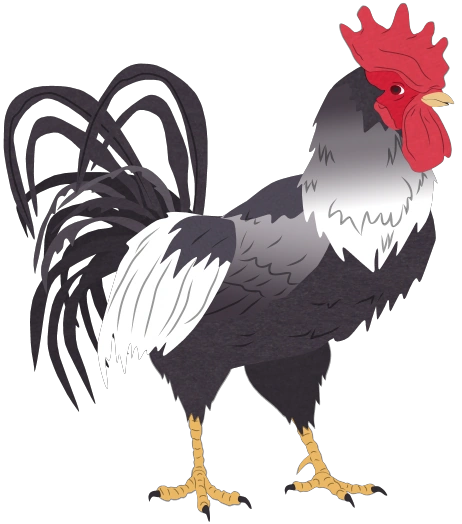 Scrambles est un coq aux plumes noires et blanches.