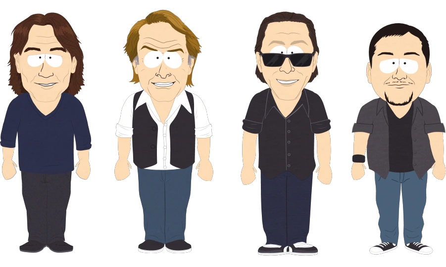 Van Halen étaient un groupe de hard rock américain formé au milieu des années 1970 et a été actif jusqu'en 2020, date à laquelle Eddie Van Halen est décédé. Ils sont apparus dans l'épisode de la dix-septième saison, "Vache rouquemoute".