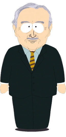 Il apparaissait comme un vieil homme, avec d'épais sourcils gris et une moustache grise. Il porte un costume noir avec une cravate à rayures jaunes et noires.