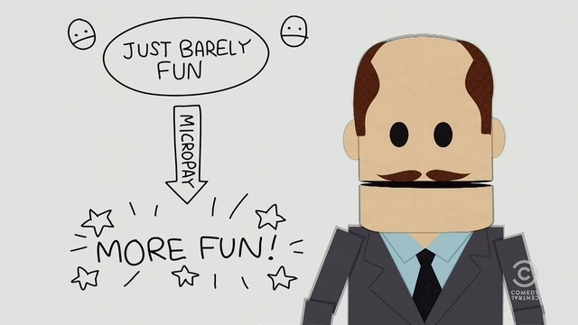 In Canada, il ministro dei giochi per cellulari spiega a Trombino e Pompadour che il gioco deve essere solo un po' divertente, in modo che i giocatori possano fare i micro-pagamenti per renderlo più divertente. Inoltre, egli convince i due attori con i soldi e la semplice idea che tutti lo facciano. Più tardi, Stan viene confrontato dai suoi amici a causa della sua dipendenza dal gioco di Trombino e Pompadour. Stan rivela inavvertitamente che Jimmy gli ha parlato del gioco. Kyle, Cartman e Kenny scoprono che Jimmy ha raccontato a tutti del gioco.