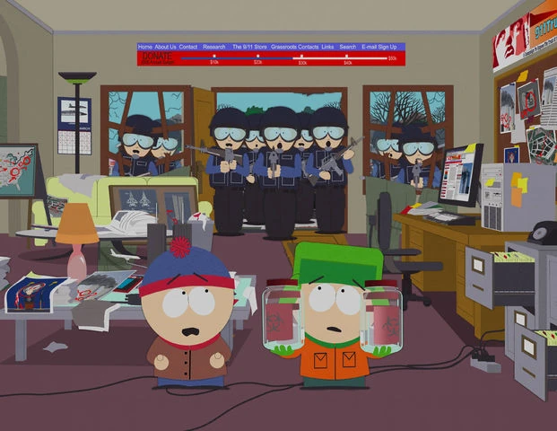 Stan chiede a Kyle come mai la CIA stia facendo delle domande su di lui, informandolo poi di aver trovato un sito che può provare l'innocenza di Kyle. I due vanno a casa del creatore del sito, il quale dice loro che il Governo è il vero responsabile per l'11 settembre. Il ragazzo dà a Kyle due vasetti di antrace e, proprio in quel momento, una squadra di SWAT fa irruzione, portando via Stan, Kyle e il webmaster.