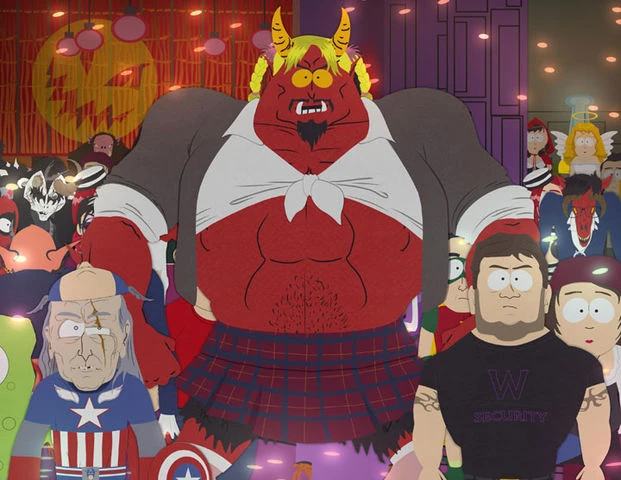 Scoprendo che Butters è scomparso, i ragazzi cercano di vedere se il rituale di Biggie Smalls funziona davvero; Smalls, che è seduto accanto a Butters su un aereo diretto a Los Angeles, si materializza contro la sua volontà a South Park e, infuriato, inizia a sparare ai ragazzi. Più tardi, viene nuovamente evocato contro la sua volontà da Randy Marsh. I membri della Chiesa Cattolica cerca di avvertire il capo dei vigili del fuoco, ma scoprono che Satana ha invitato pure lui alla festa, così decidono di tentare ad imbucarsi alla festa. Tuttavia, i buttafuori non permettono loro di entrare, in quanto non indossano il braccialetto degli altri invitati.