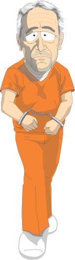 ジェフリー・エプスタインは白髪に無精ひげを生やしており、オレンジ色の囚人服を着ている。腕は囚人の証である手錠で拘束されている。