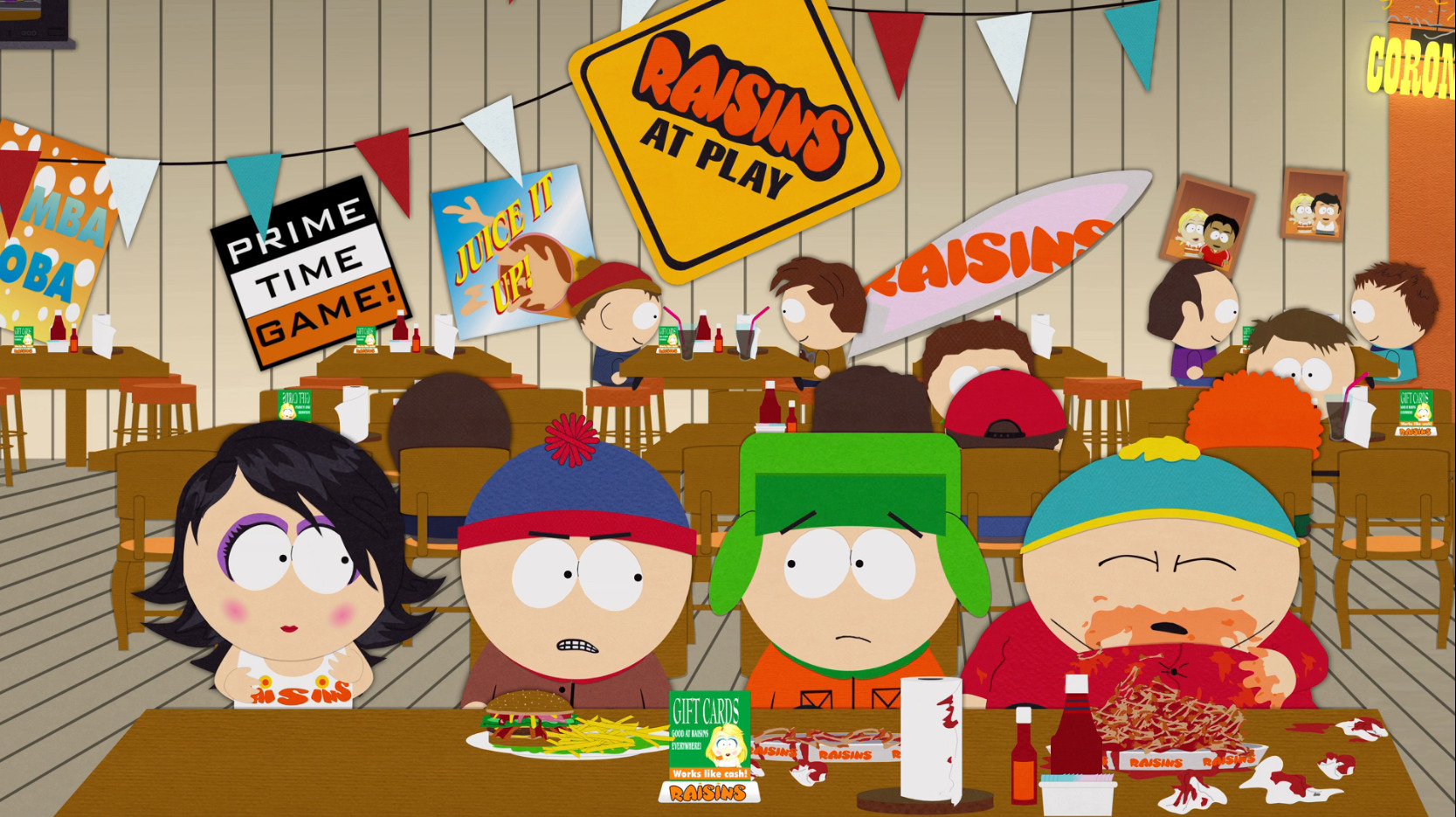| 邦題:子供キャバクラVSゴスキッズ ウェンディーとスタンが破局する。少年たちはおいしい手羽先とかわいい女の子達で有名な「レーズンズ」にスタンを連れていく。 | |||||