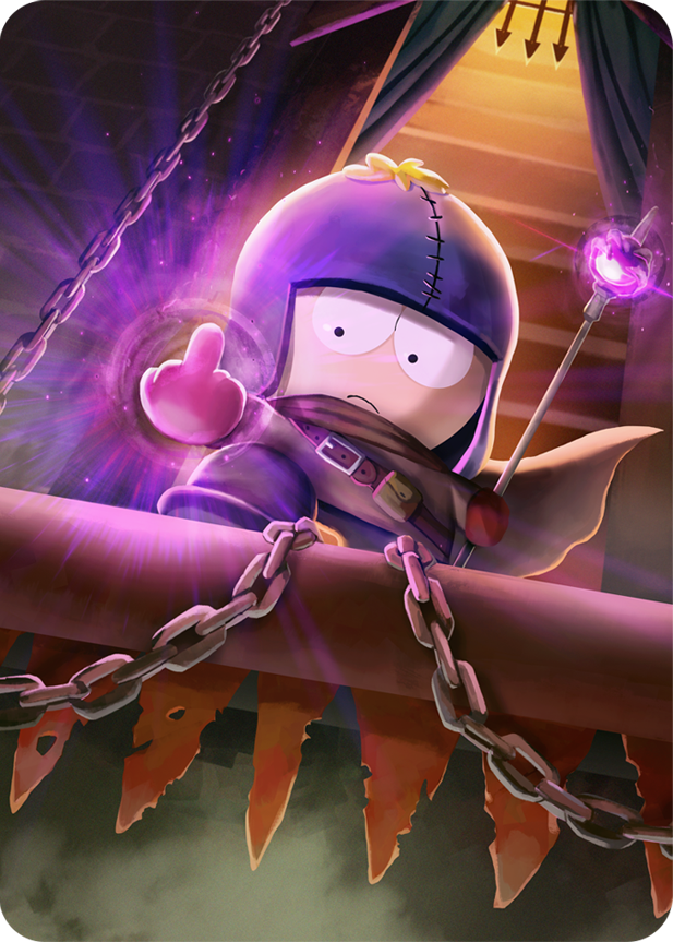 所変わって、魔法使いの仮装をしたカートマンの姿が映る。彼はゲーム機Xbox Oneの発売に関する話し合いを求めて、親友ケニー(マコーミック卿)の自宅を訪れる。