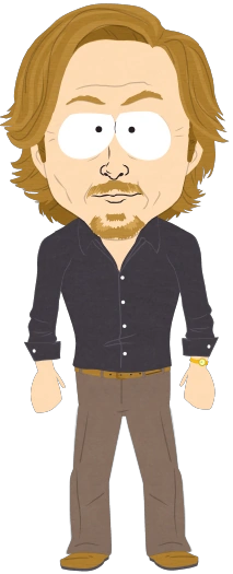 David Spade ma długie brązowe włosy i krótką brodę typu balbo. Nosi czarną koszulę z kołnierzykiem, matowe brązowe spodnie i brązowe buty. Ma też złoty zegarek na lewym nadgarstku.