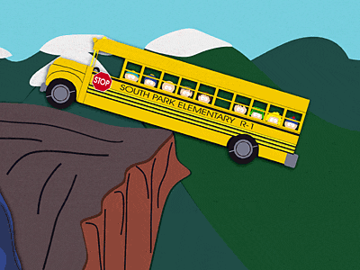 Po kraksie podczas burzy śnieżnej, szkolny autobus zawisa na skraju przepaści.