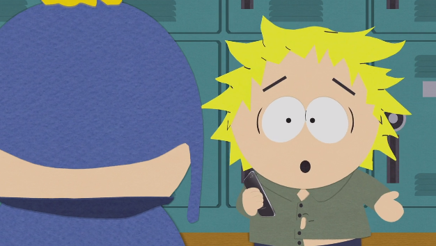 Do Stana podchodzi Heidi by porozmawiać o Ericu, Marsh zgadza się na rozmowę. Turner zmartwionym głosem mówi o tym, że Cartman myślał o samobójstwie po rozstaniu. Stan się tym ździwił, Heidi powiedziała, że wyśle mu nagranie z rozmowy jeśli tylko obieca dochować tajemnicy Marsh odpowiada, iż dochowa po czym następuje przeskok do łazienki szkolnej. Stan trzyma w ręce telefon, obok chłopaka stoją jego koledzy i śmieją się z puszczanego z telefonu nagrania na którym Cartman jęczy, że się zabije. Kilka kroków od grupki chłopców stoi obrażony Eric sarkastycznie mówiący, że odsłuchiwanie czyiś wiadomości prywatnych jest fajne, w stronę Cartmana odwraca się Kyle mówiąc mu iż brzmi jak zdychająca świnia. Wkurzony Eric odwraca się w stronę skupiska i drze się, że myśli samobójcze nie są bekowe mimo to grupka nadal się śmieje, a Cartman ponownie krzyżuje ręce.