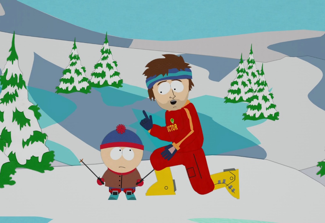 - Depois de perder a primeira corrida, Stan coloca seus esquis e bastões de esqui para baixo na neve.Na próxima cena dos meninos, os esquis e bastões desapareceram.