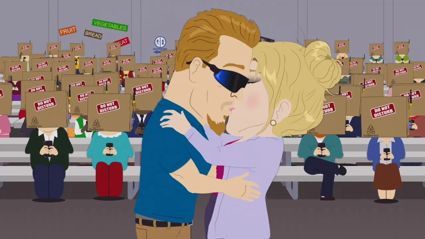 Cartman vai até a prefeitura para falar com a prefeita sobre ansiedade. Ele explica sobre a palavra Namaste, que significa "Foda-se, eu tenho ansiedade". Ele recebe a prefeita para dar a todos as Caixas de Buda, acreditando que isso vai ajudar. Os Bebês PCs, depois de protestar contra a construção de um prédio, acabam fazendo música para uma gravadora. Sua música, que é apenas choro, é ouvida por Diretor PC e Mulher Poderosa, que vêm buscar seus filhos. Eles descobrem que perderam o primeiro protesto dos bebês porque estavam no celular, e Diretor PC tem uma ideia. Os dois têm uma reunião de pais e mestres, onde o Diretor PC diz a todos os pais que ele está proibindo celulares e Caixas de Buda das escolas. Os pais, no entanto, estão todos usando Caixas de Buda, então nenhum deles escuta. Os dois então percebem que, sem ninguém assistir, eles podem ser uma família normal por uma vez, e fazem isso em uma montagem, fazendo um piquenique e visitando Aspen. |