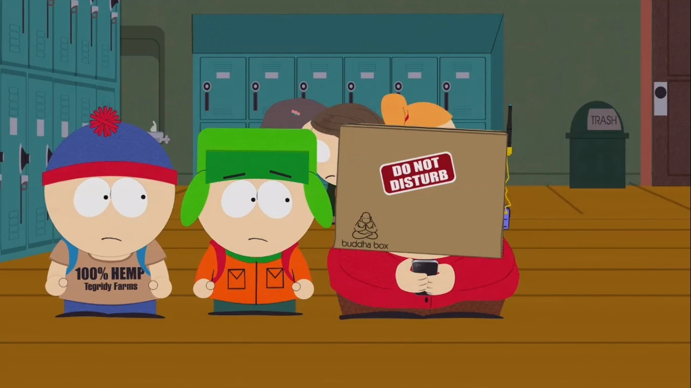 Os meninos jogam futebol na escola, mas continuam perdendo porque Cartman está muito distraído com a Caixa de Buda para jogar no gol. Quando Kyle tenta reclamar, Cartman vira a mesa, alegando que Kyle acredita que as pessoas com ansiedade não devem poder jogar. O terapeuta estabelece um grupo de gerenciamento de ansiedade, com os sofredores de ansiedade ainda usando suas Caixas de Buda. Tweek está chateado que Craig mudou, e Liane tenta dizer a Cartman que ele tem muito potencial. Cartman reclama que ele nem quer estar aqui por causa de sua ansiedade. Diretor PC e Mulher Poderosa saem à procura de seus bebês, discutindo sobre quem a culpa é deles desapareceram. Eles vão para a delegacia de polícia para obter ajuda, eles se sentam e esperam por ajuda, e continuam a usar suas Caixas de Buda. Os garotos visitam o Parque Aquático do Pi Pi , mas, mais uma vez, Cartman está muito ocupado com sua Buddha Box para se envolver, causando uma longa fila no toboágua. Ele envergonha Kyle por acreditar que as pessoas devem ficar em casa. Kyle, em resposta, diz a ele que todo mundo tem ansiedade, e eles superam isso. Cartman então tem uma idéia, para o desespero de Kyle. |