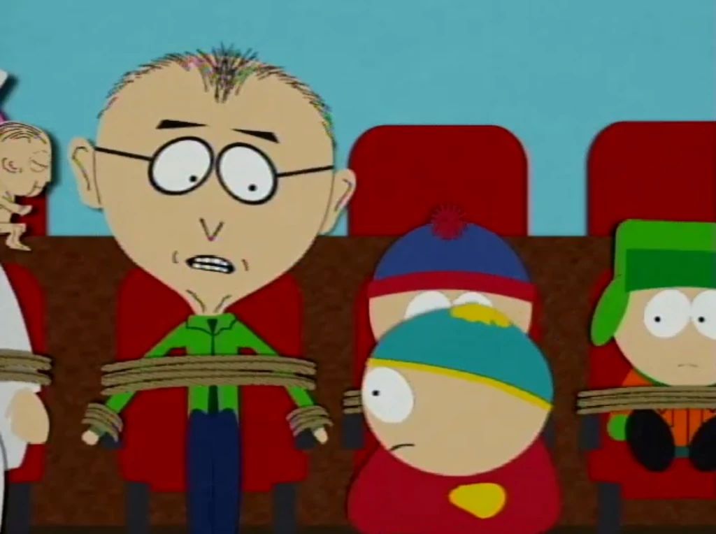 Cartman aparece na TV, mas descobre que nenhum de seus amigos assistiu porque estavam no planetário - ele não percebe que eles estão em transe hipnótico. O Sr. Mackey aparece no planetário, e os meninos logo são hipnotizados. Enquanto observam os lasers e ficam hipnotizados em um sono hipnótico, Cartman aparece furioso com eles por não ter o visto na TV por causa do planetário e quebra o dispositivo a laser. Ele gira e irradia uma luz branca brilhante diretamente para os olhos do Dr. Adams. Quando Cartman desliga a máquina, a mente de Adams foi completamente apagada. Stan e Kyle refletem sobre o poder da máquina que o Dr. Adams construiu, mas Cartman está feliz em ser o herói da vez. |