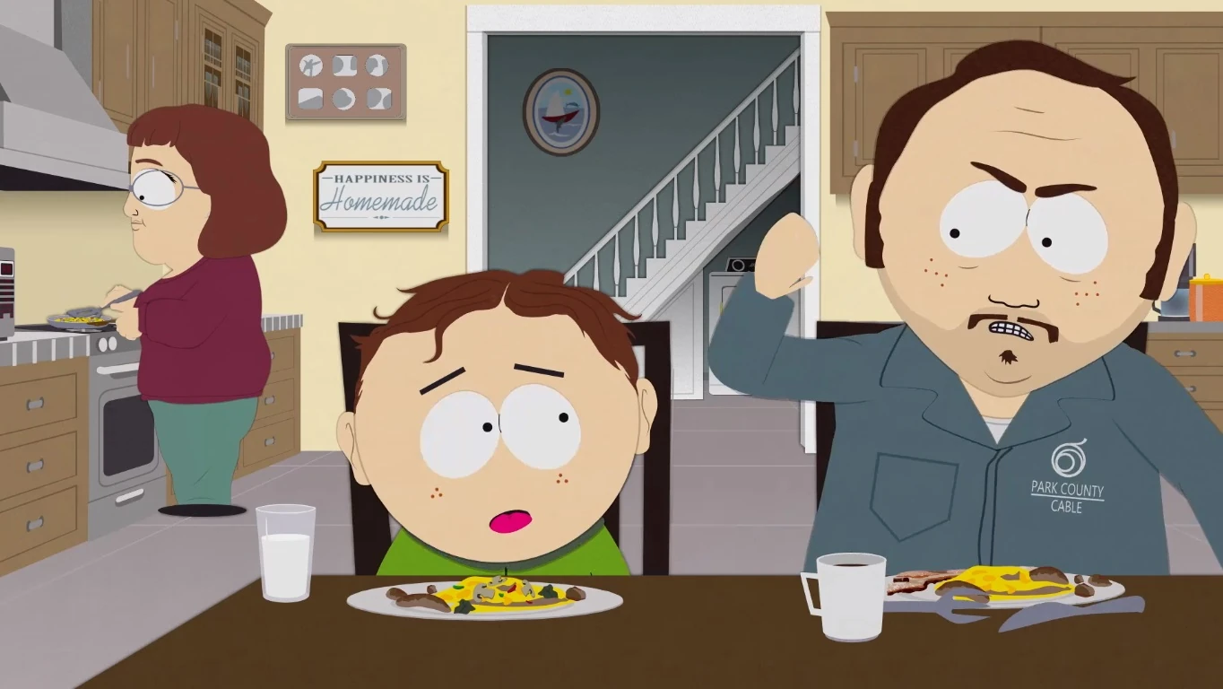 - Cartman assiste as Queef Sisters embora tenha ficado enojado com elas em "Comer, Rezar, Peidar".