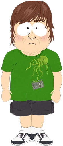 Джонс выглядит слегка полноватым, у него длинные каштановые волосы. На нём зелёная футболка с изображением осьминога с радиоприёмником, чёрные шорты, белые носки и белые кроссовки.