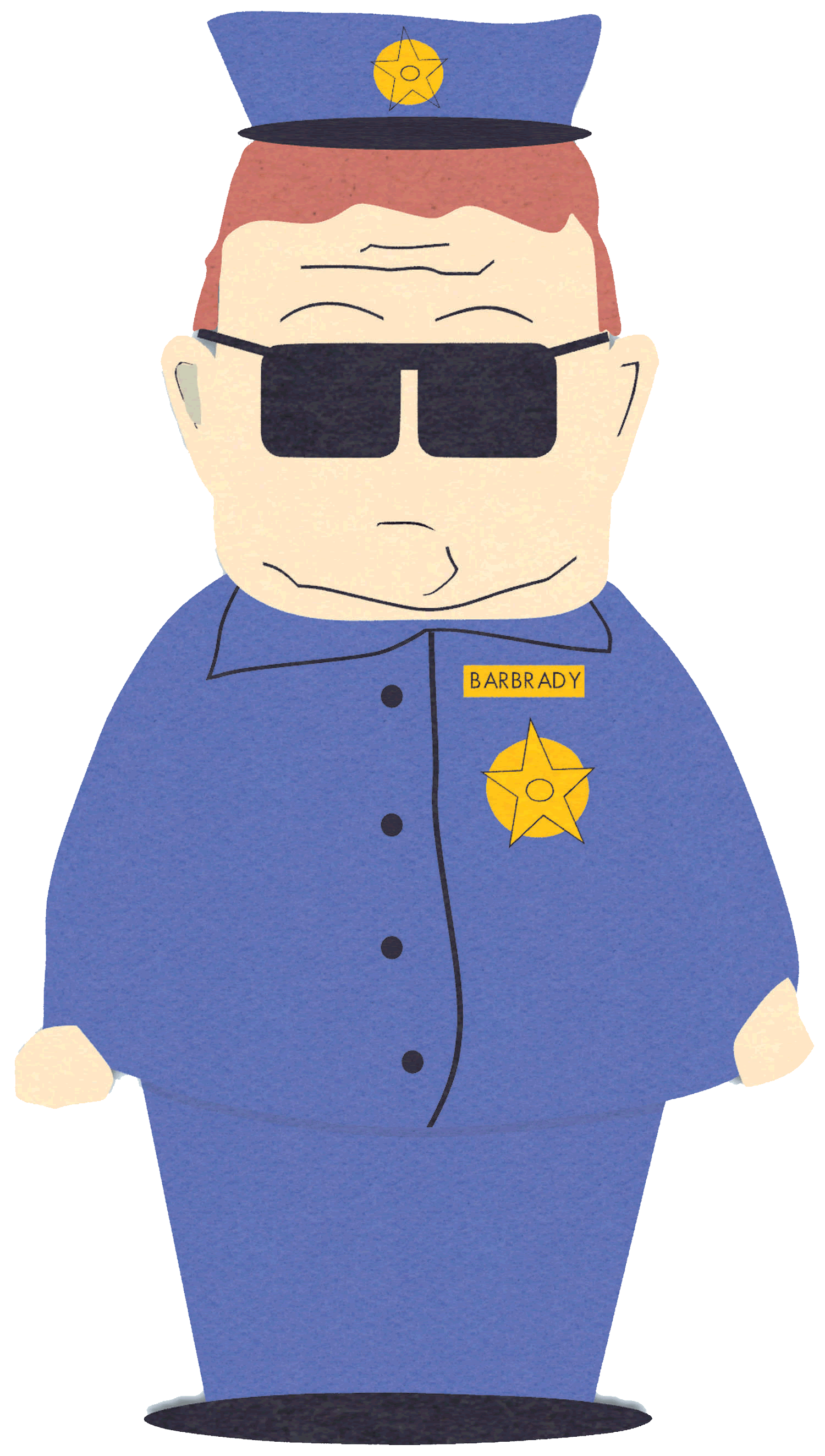 На нём традиционная синяя полицейская форма и чёрные солнцезащитные очки. Кажется, у него немного избыточный вес. Барбрэди, скорее всего, почти глухой; он носит слуховой аппарат и говорит громко, невыразительно. Следует отметить, что он не снимает солнцезащитных очков, за исключением финала эпизода «Картман и анальный зонд», но его глаза, рот и щеки изменились из-за инопланетного устройства, и поэтому было неизвестно, как он выглядел без солнцезащитных очков до эпизода «Шаловливые ниндзя», где он был вынужден отказаться от полицейской формы, включая солнцезащитные очки. Он стал носить коричневый пиджак поверх синей рубашки и серые брюки.