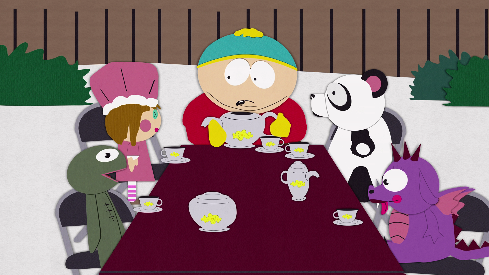 Картман устраивает чаепитие со своими игрушками в эпизоде «Мамаша Картмана — грязная шлюха».