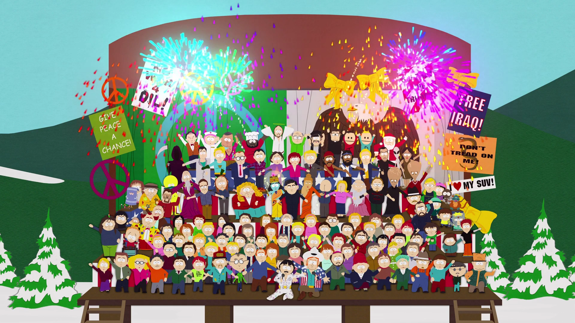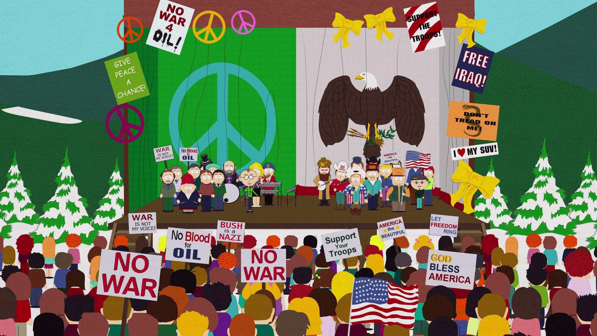 "Bleeding Heart Rock Protest Song vs. Pro War Country Song" from Season Seven episode, "I'm a Little Bit Country".