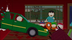 When Randy finds out about the meeting he realizes that when it is over, all the seniors will be driving on the road at the same time. Horrified, Randy runs into the town and the farmer's market and shouts out a cry of alarm that old people are driving, causing mass panic. He asks Gerald where the boys are. He revealed that the boys are playing street hockey. As Randy runs toward the boys, Kenny spots all seniors driving. Randy manages to save the boys and they flee from the many cars recklessly wandering the streets, eventually hiding in an abandoned house. Moments later, the house gets overrun by seniors making the wrong turn and going the wrong way (even on the second floor). It is later revealed that despite Randy's warning, the seniors managed to run down even more helpless victims across South Park, sparking public outrage. The results is 14 people deaths and 3 million dollars for damages while the seniors were driving at the same time.
