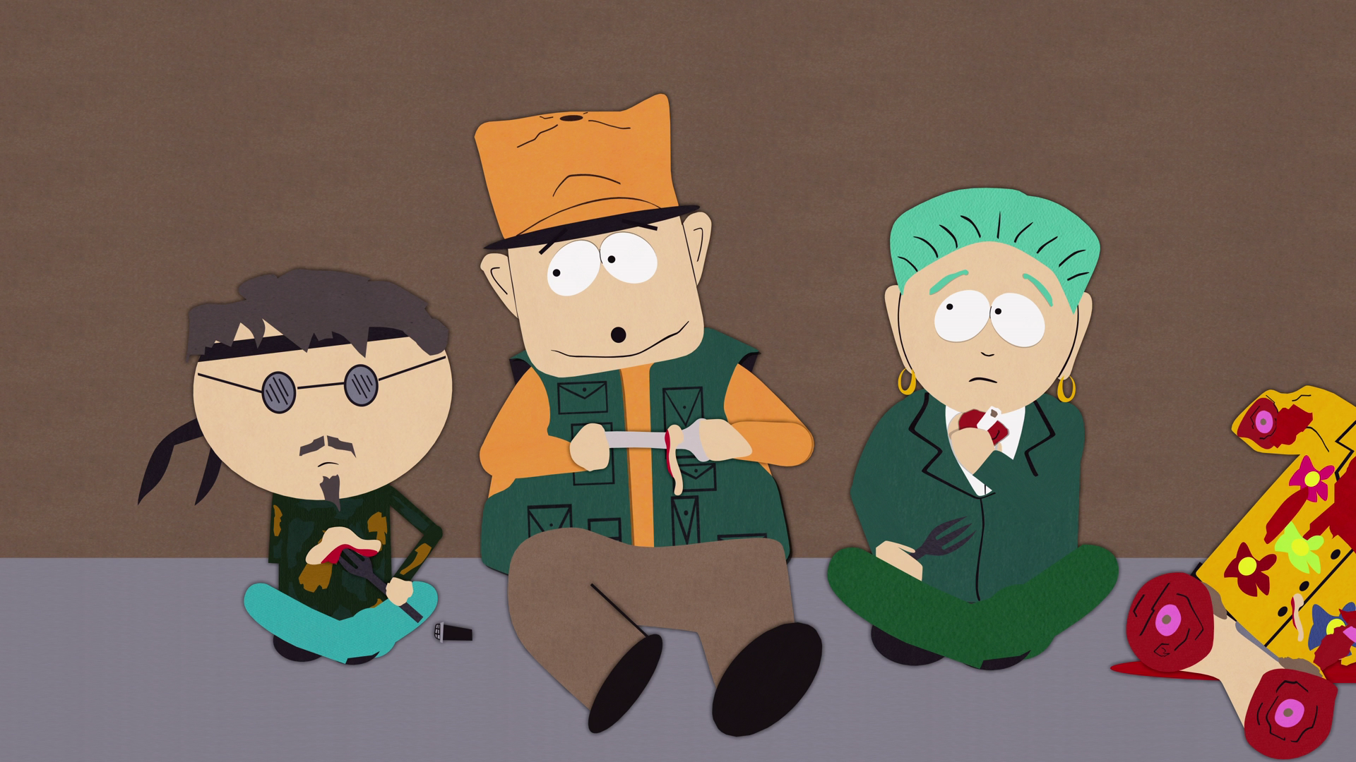 - "Chef Goes Nanners" - Jimbo and Ned try to get the South Park flag to remain the same.