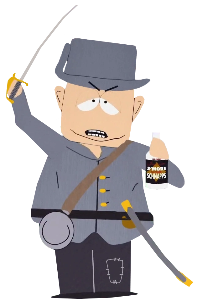 - Riot: In "The Red Badge of Gayness", he is the secondary leader of Cartman's army of drunken Confederate reenactors, which starts a riot countrywide.