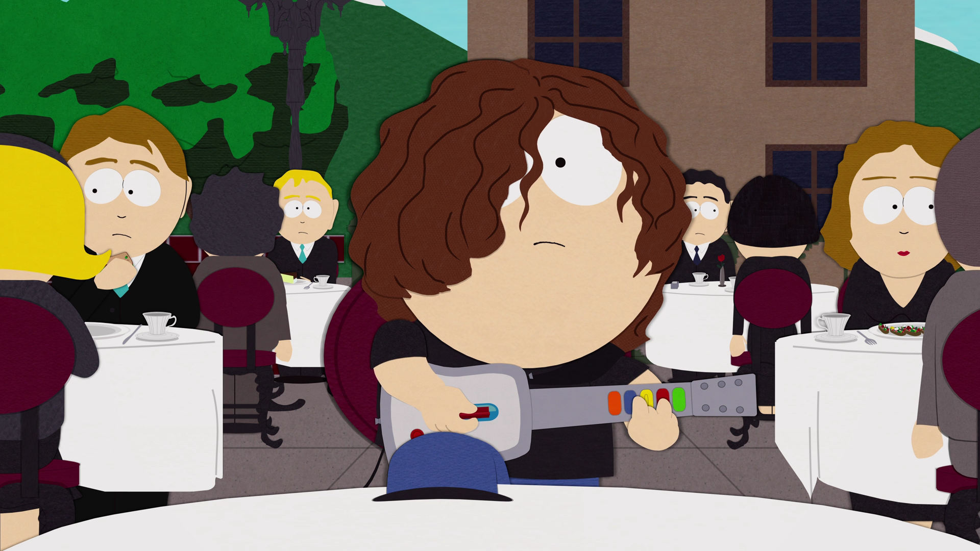Charles Kincade introduces Thad Jarvis as Kyle Broflovski's replacement for Stan Marsh's Guitar Hero team. When tested by Stan, to see if he knows how to play the song, he does so on his video game controller.