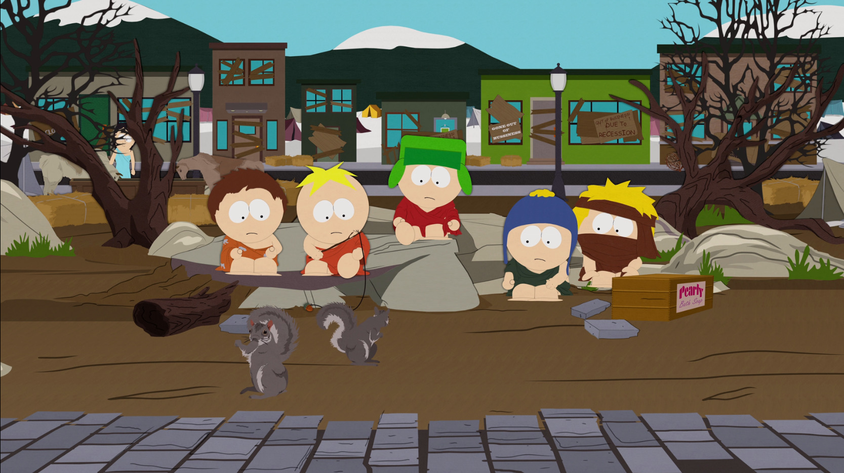 People in South Park are struggling with the recent economic downturn and many people on the street are preaching about who they should blame. A Wall Street executive suggests that low-interest rates are to blame, a regular citizen blames the problems on Wall Street, and meanwhile, Cartman blames it on the Jews. Randy continues to teach his philosophy to the rest of the city, while at the same time defending his own stupid purchases, saying the bare essentials people should buy include Margaritas. Randy's ideas become the most popular and he starts to gather a following, telling people they have angered the economy with their reckless spending and encourages people not to spend money in order to propitiate the economy's anger. People start to wear togas made of bed sheets so they don't have to wash clothes as much and also try to spend as little as possible to try and earn the economy's favor like it's some sort of deity.