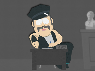His first major role was in "The Death Camp of Tolerance", in which Mr. Garrison, the elementary school teacher of the main characters, learns that he can sue the education board for a lot of money if he is fired for being gay, and does his best to ensure this happens. To this end he hires Mr. Slave as his classroom assistant, or, for short, "teacher's ass." The lessons become increasingly sexual, and degenerate in nature, culminating in Mr. Garrison inserting the class gerbil, Lemmiwinks, into Mr. Slave's rectum.