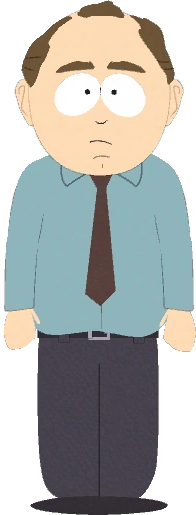 Mr. Drordy has balding brown hair and brown eyebrows. He wears a light blue collared shirt, a brown tie, a black belt, black pants, and black shoes.