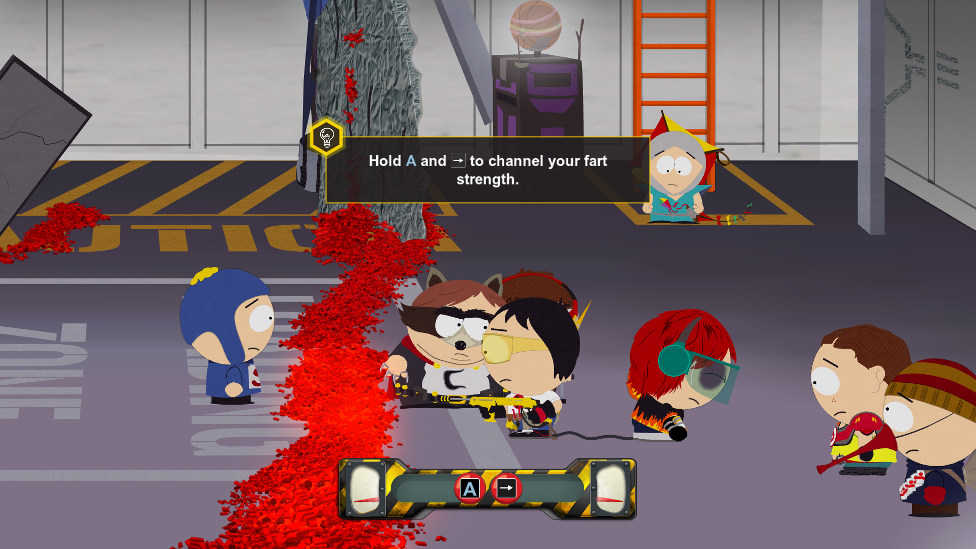 The New Kid using their fart powers to power Stan's sandblaster.