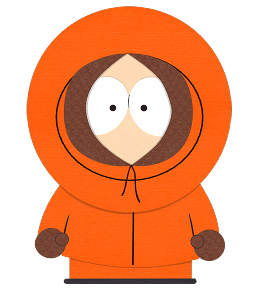 Kenny wears an orange parka, orange pants, and faded-brown gloves, and black shoes. Almost of all the time, Kenny has his hoodie on so that only so that his only part of his eyes and the part of his face are shown. Underneath his parka, he has blond hair styled in loose spikes.